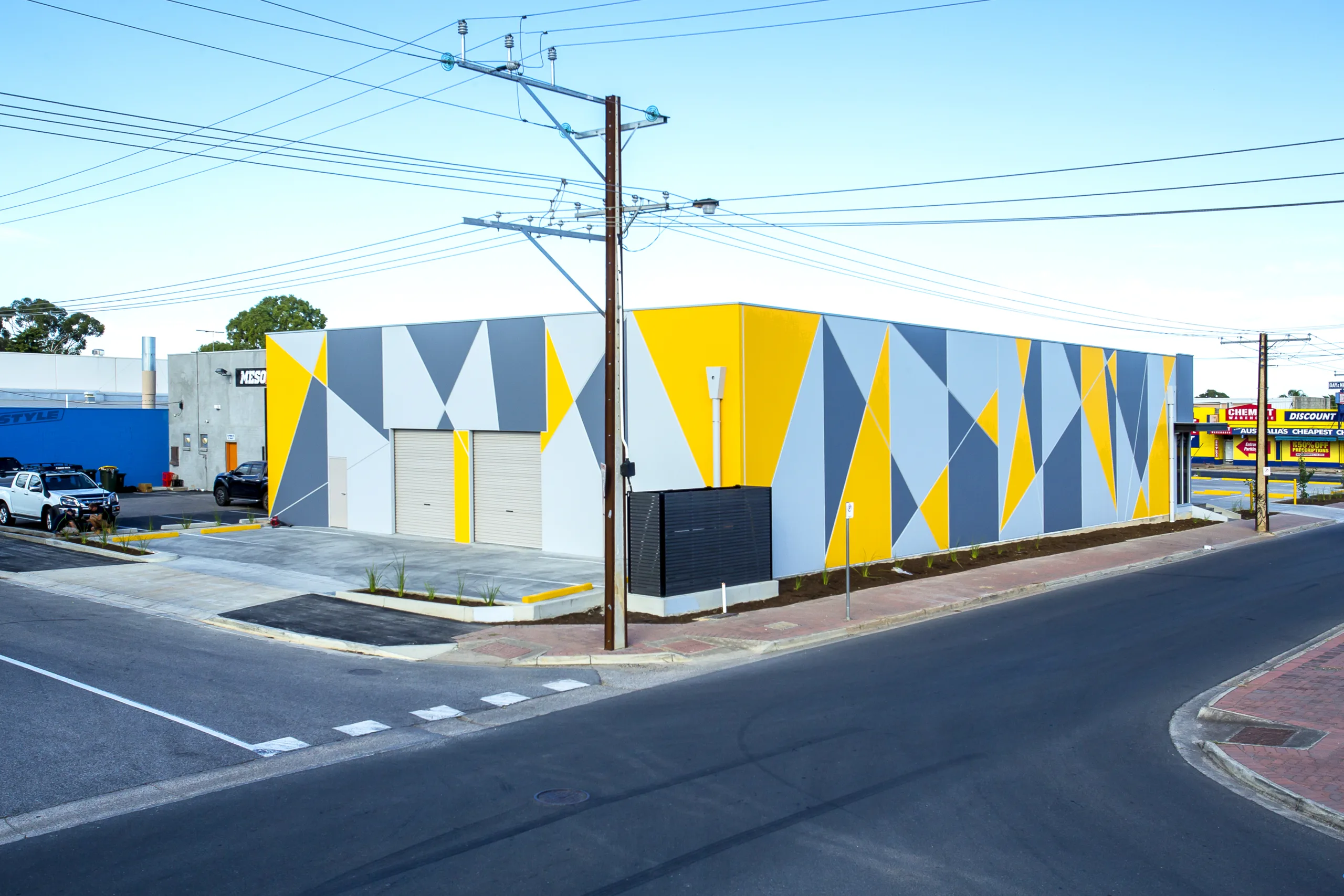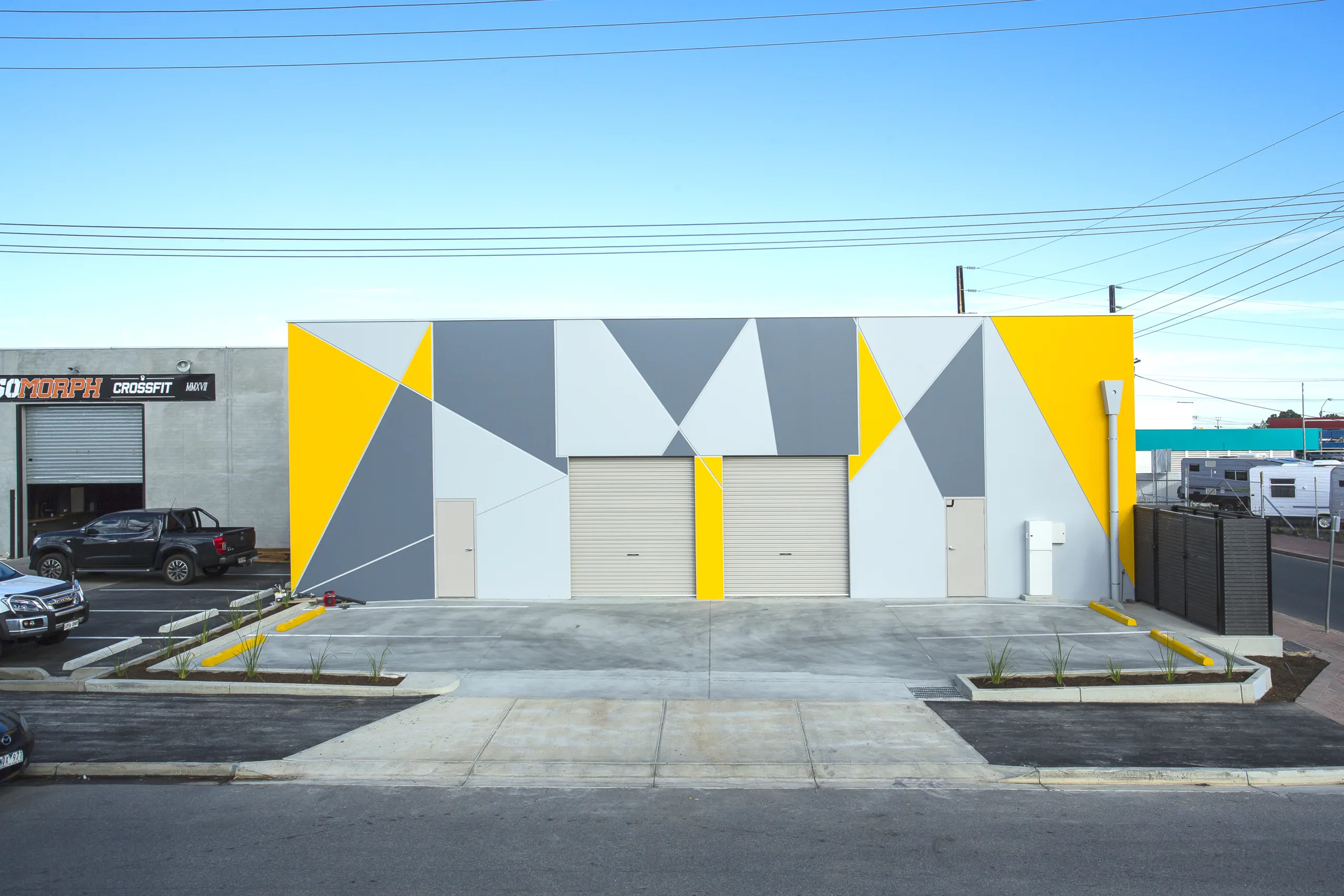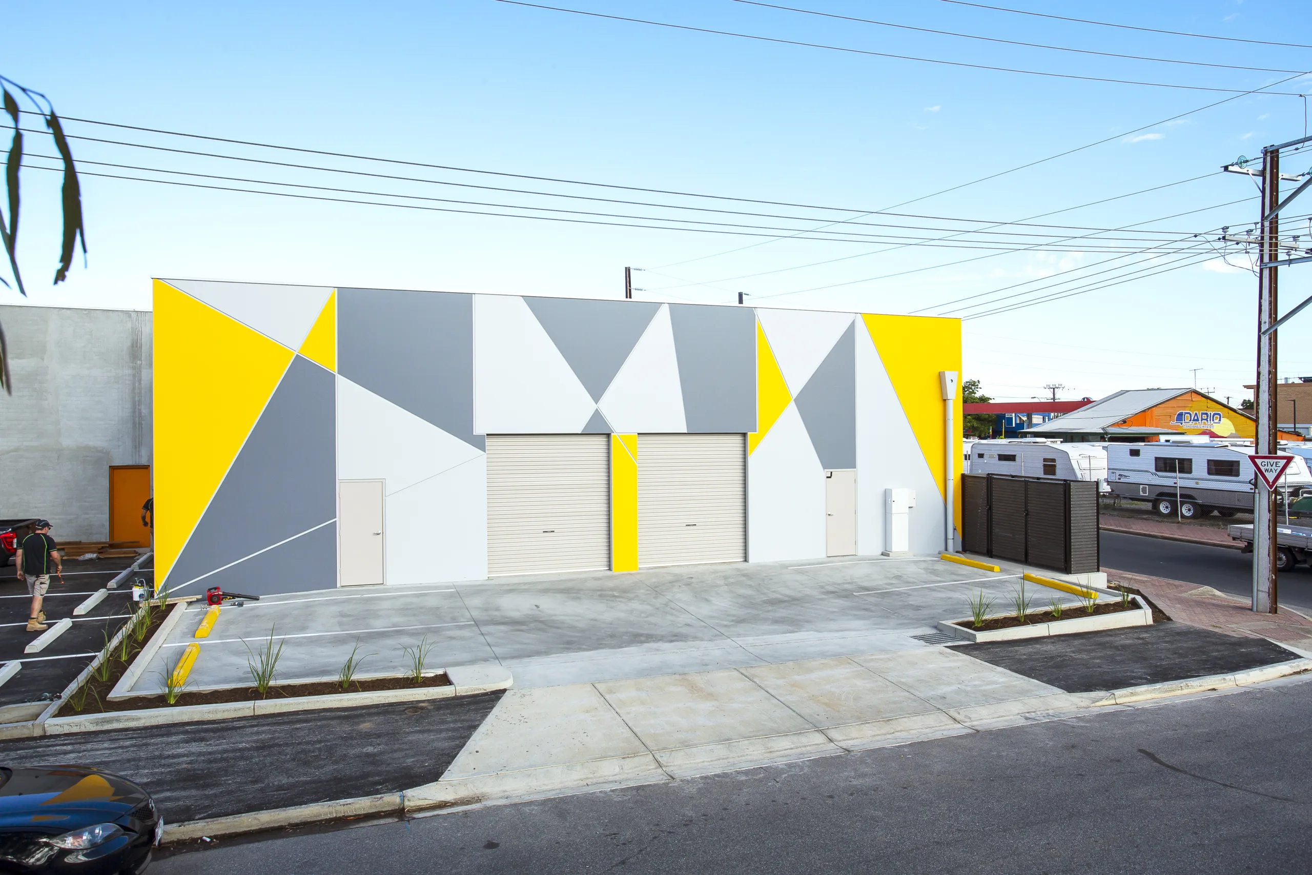 A new full-height precast concrete warehouse was constructed on the same site. Its expressed-joint cladding and commercial aluminium windows and doors give the development a strong and contemporary edge.