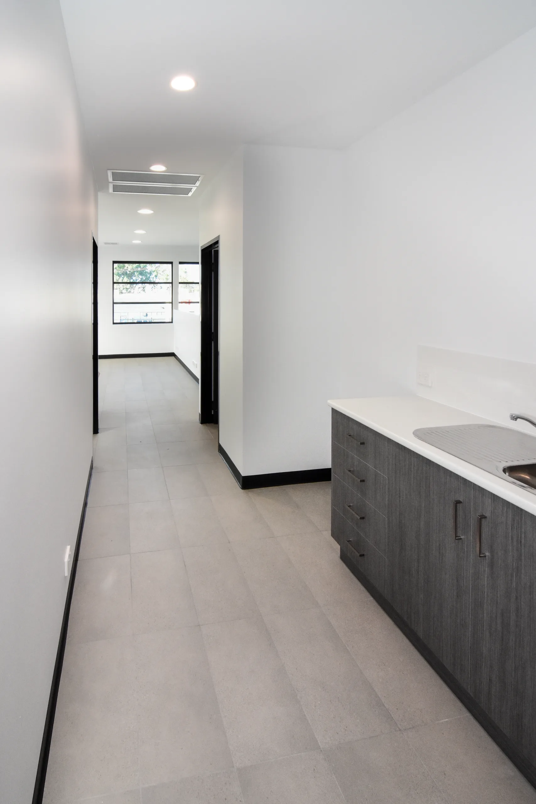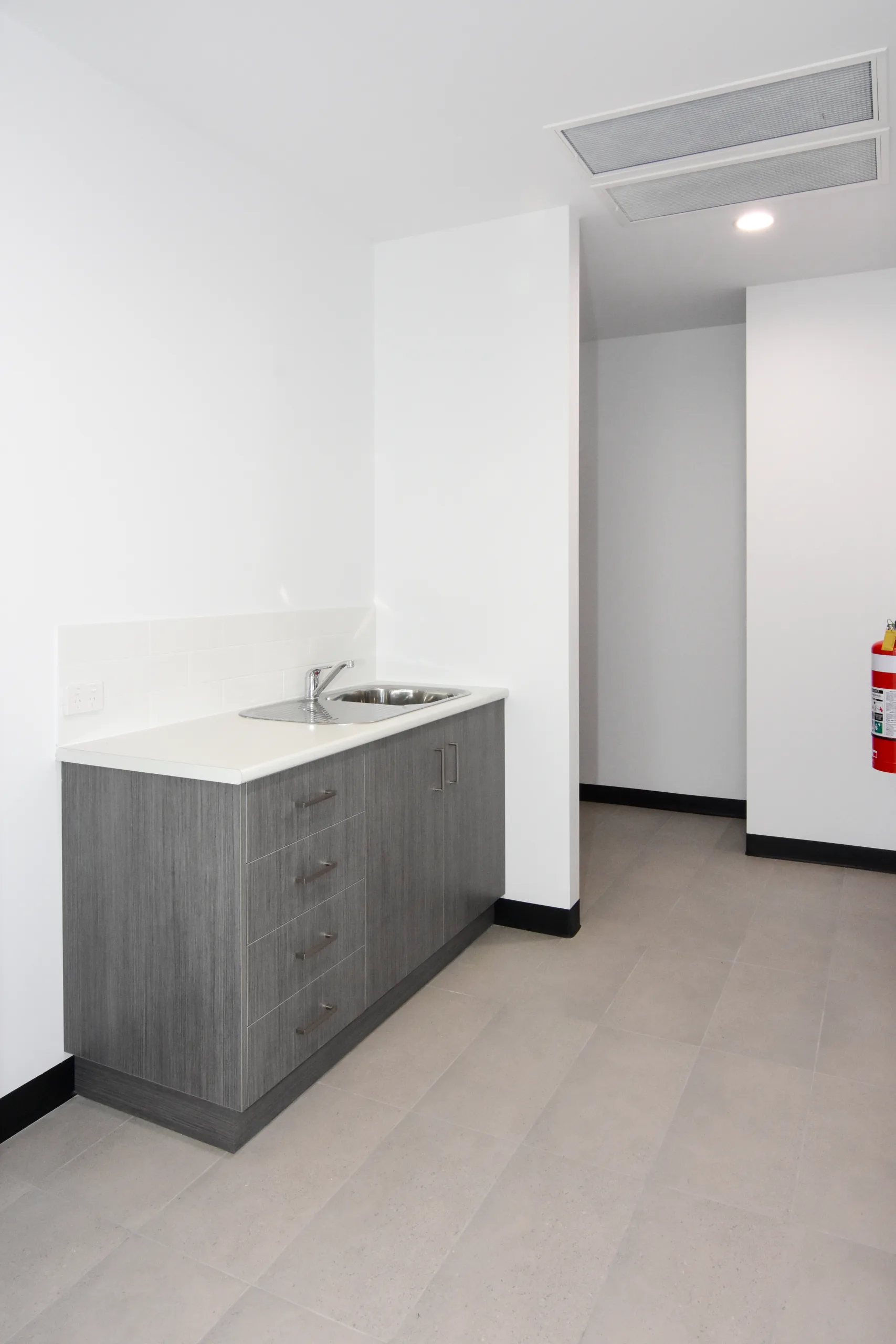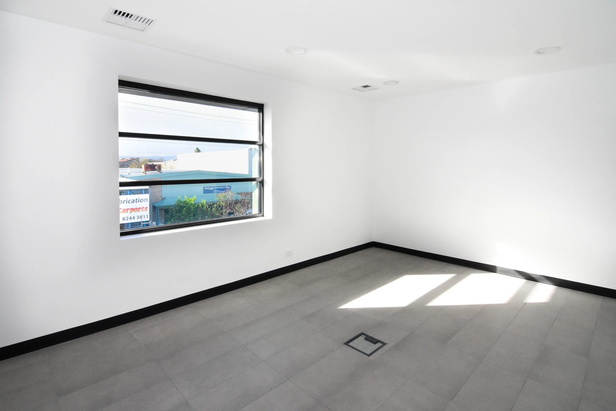 The two-storey office is constructed with a prefabricated steel stud framing system and a 75 mm Hebel PowerFloor system to the first floor, providing a solid, high-performance finish and a streamlined build process.