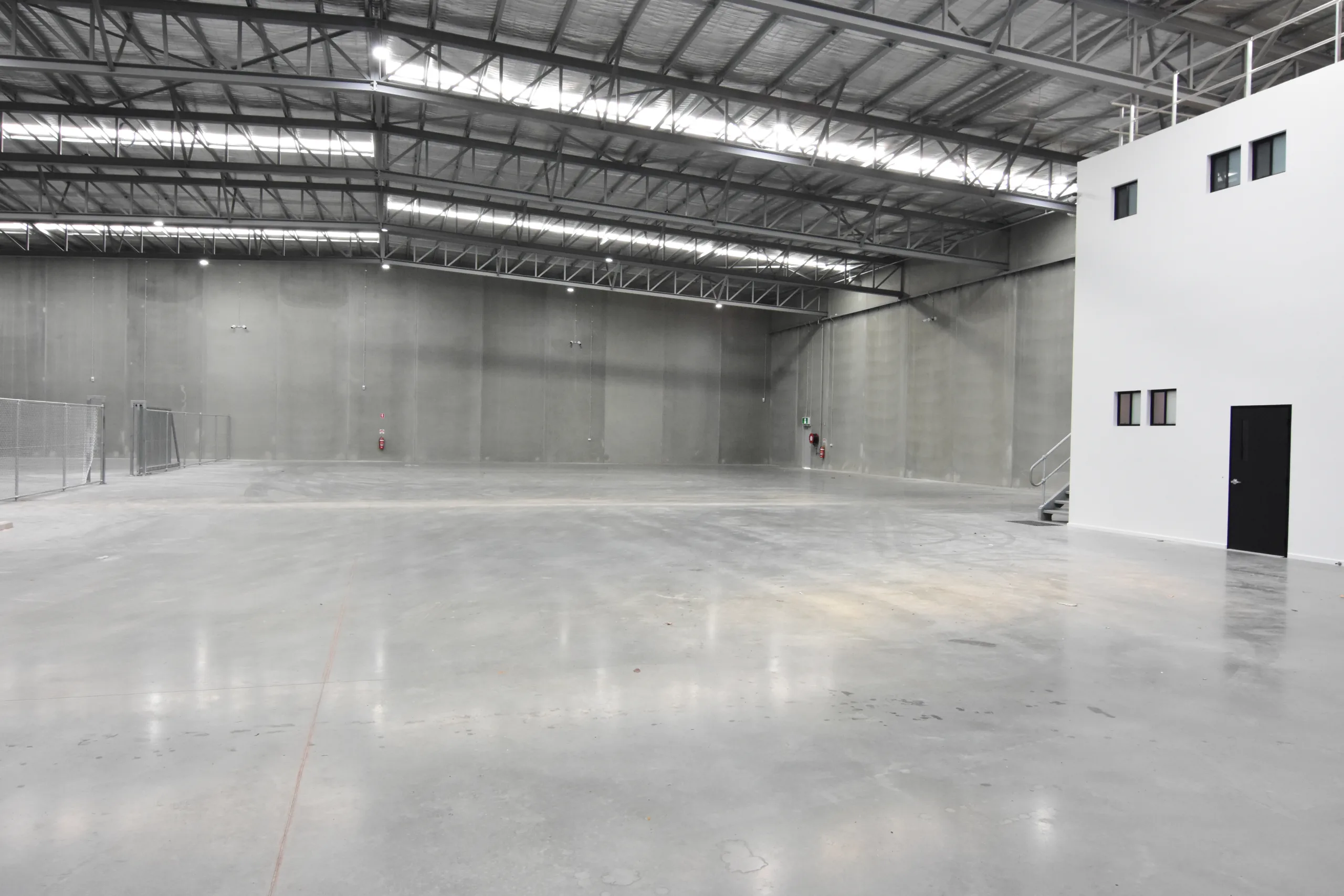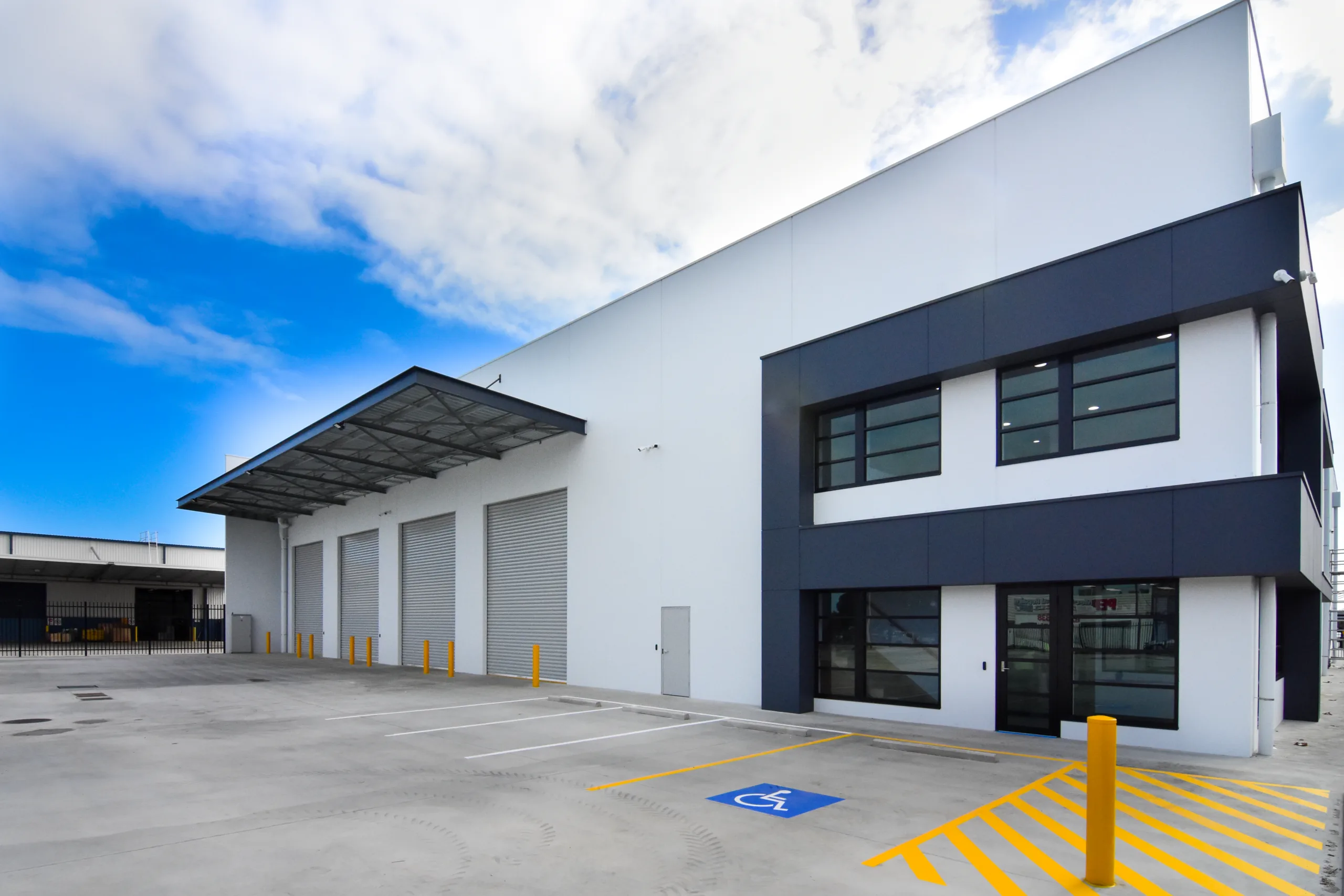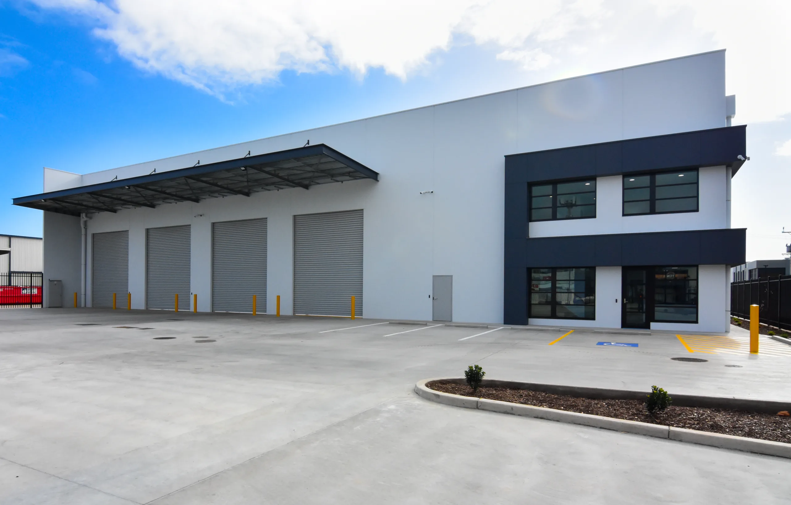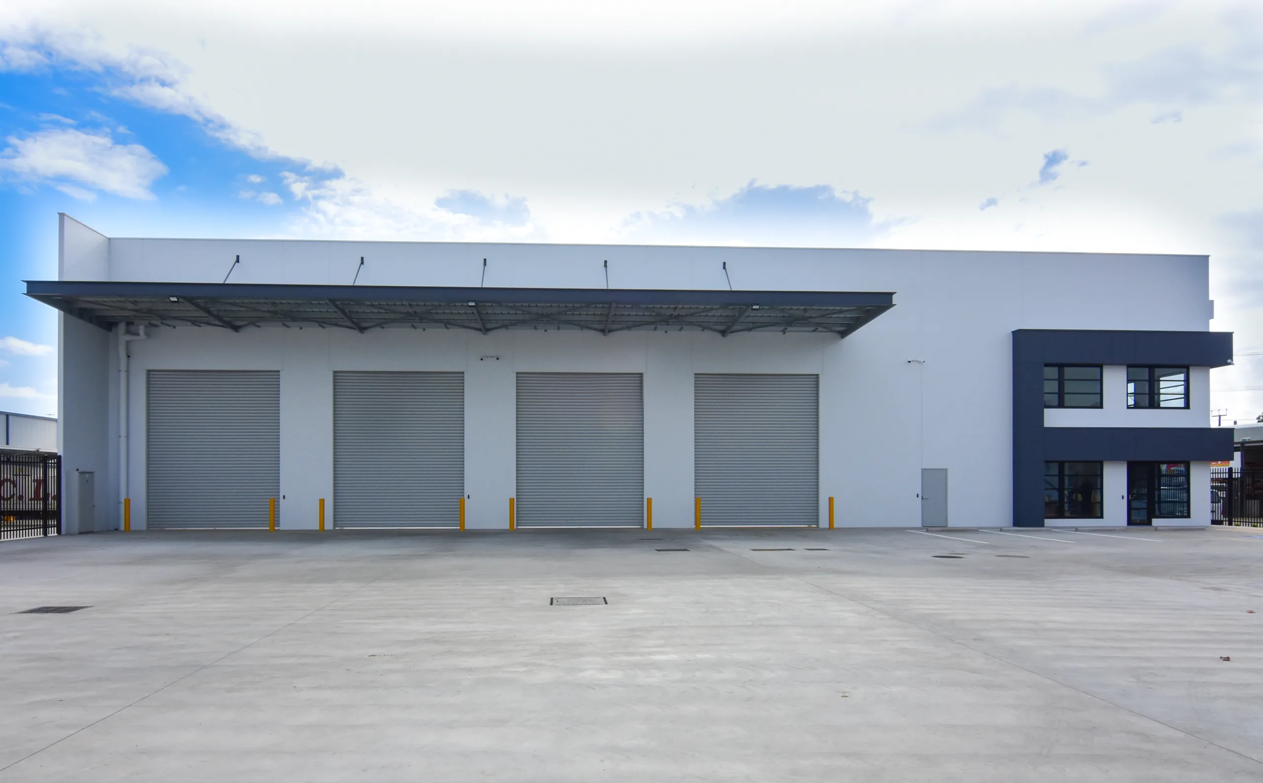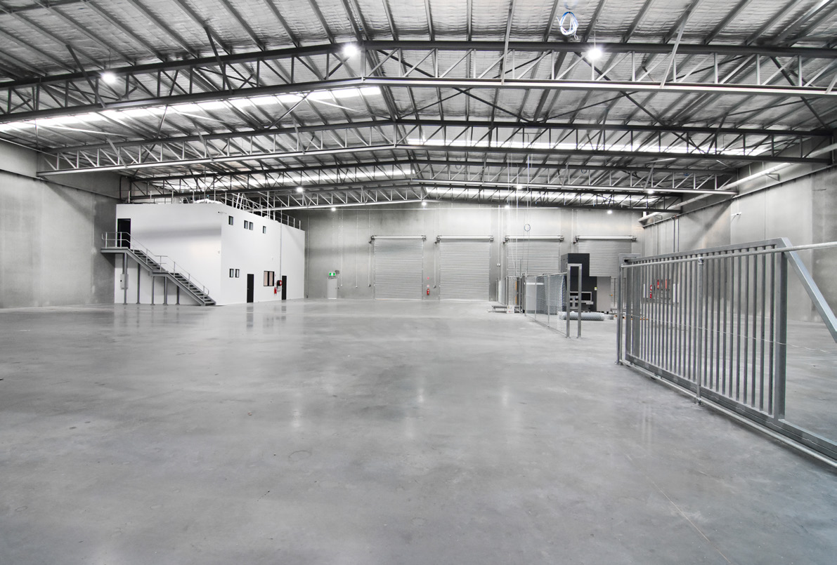This purpose-built facility features a clear-span structural steel warehouse with 10-metre-high precast concrete boundary panels. The warehouse structure is supported by a fabricated welded truss spanning 34 metres, allowing unobstructed movement and efficient operational flow.