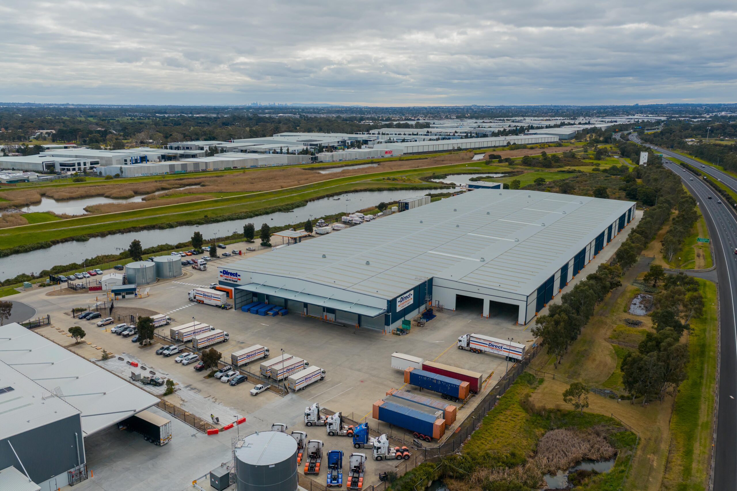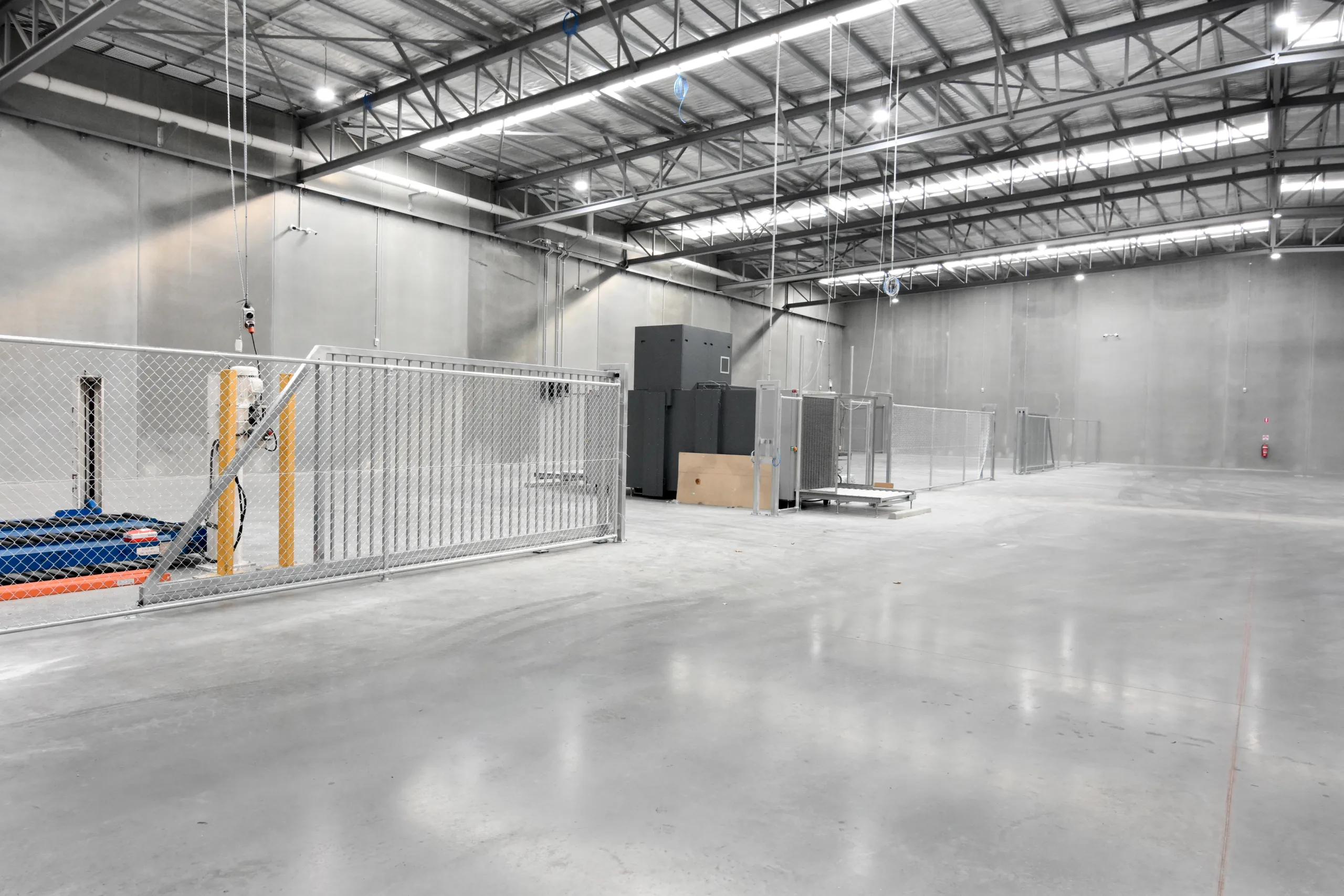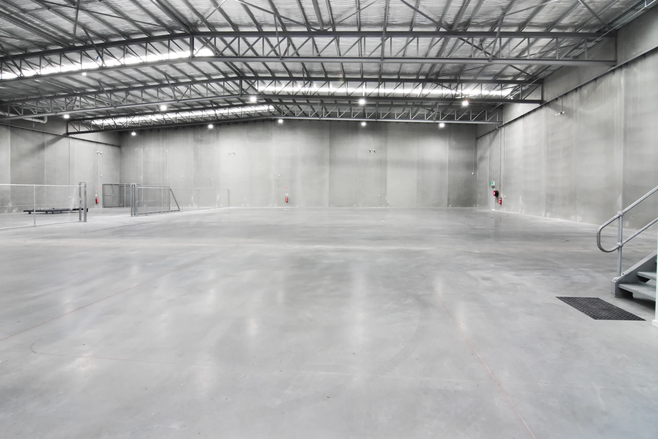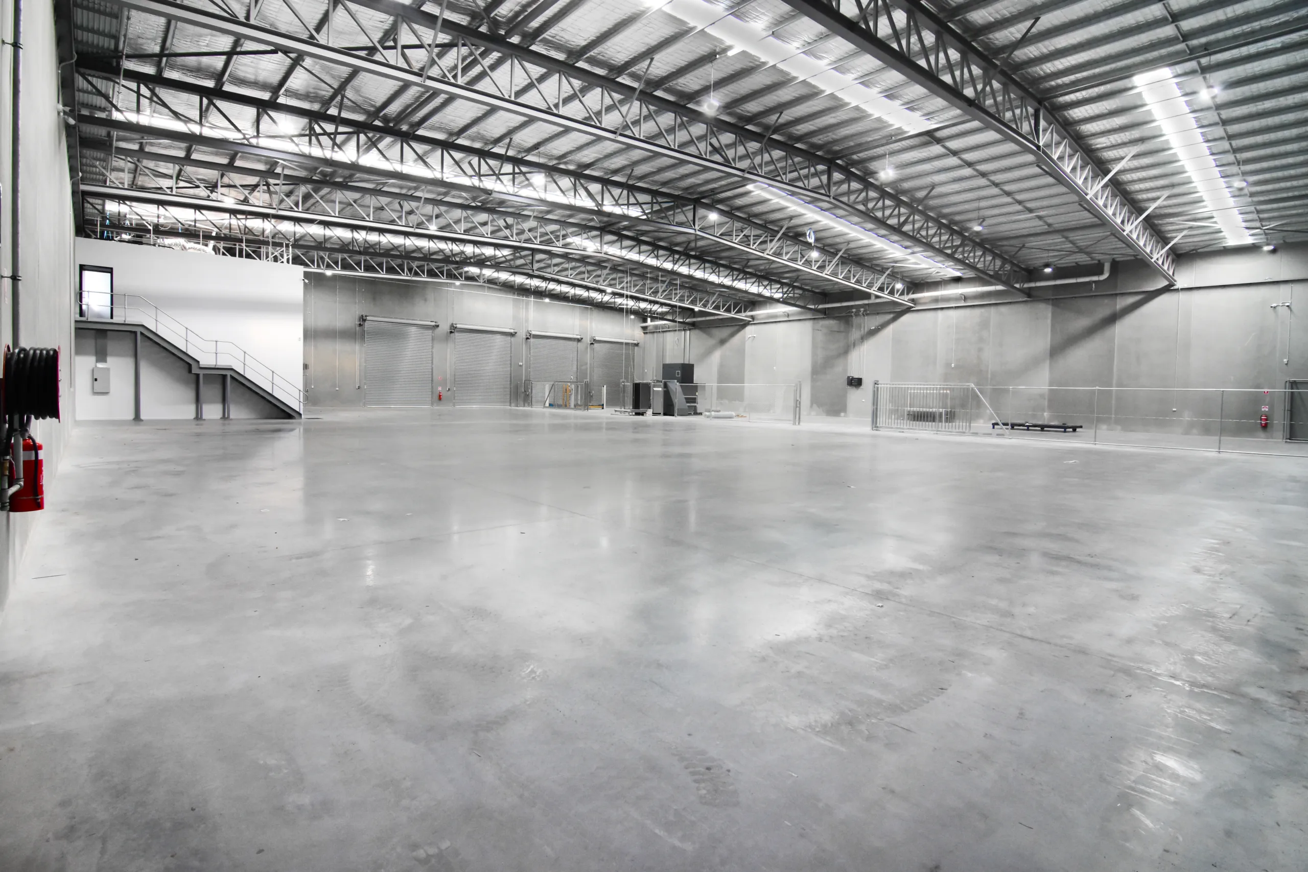 This purpose-built facility features a clear-span structural steel warehouse with 10-metre-high precast concrete boundary panels. The warehouse structure is supported by a fabricated welded truss spanning 34 metres, allowing unobstructed movement and efficient operational flow.